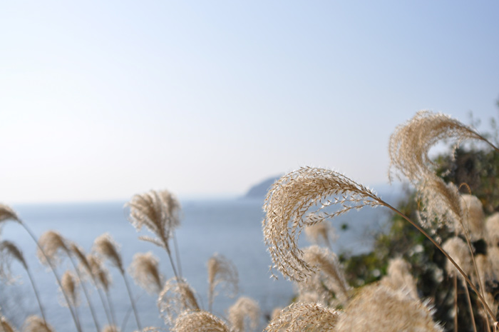 すすきの穂が風になびいています。